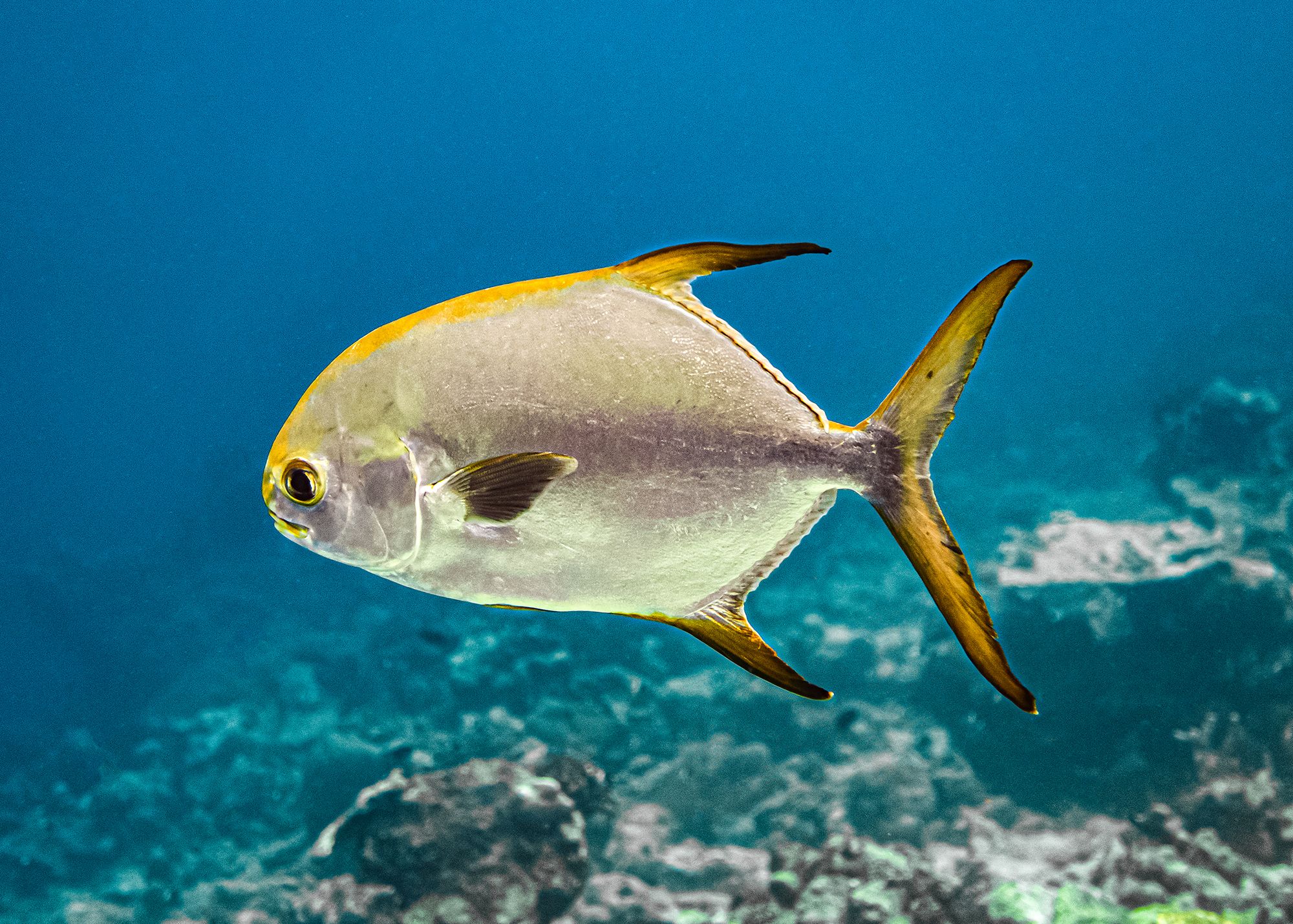 The Caribbean region, with its many vibrant coral reefs, is home to large numbers of permit. The region is also considered one of the best places in the world to fish for this species. The permit is a greyish, highly reflective fish that grows to about 48 inches long, often weighing as much as 60 pounds. The best time to fish for permit is the same as the best time to catch tarpon — May through to mid-November annually. Permit can be more difficult to catch than tarpon, and thus create a welcome challenge for seasoned anglers.