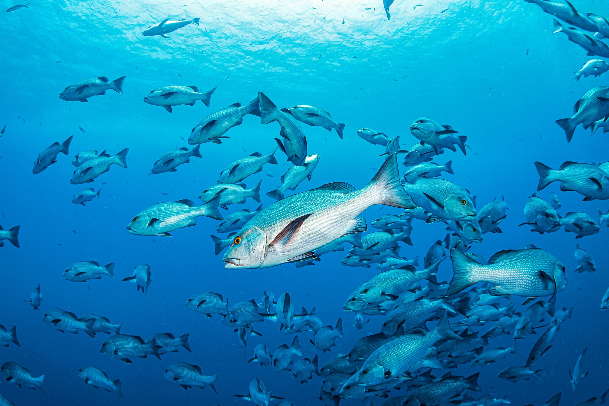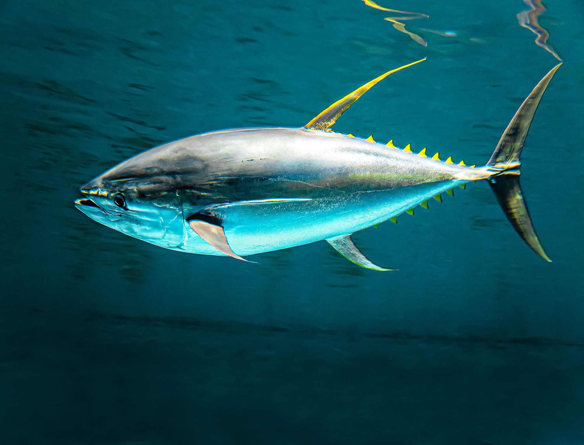 Yellowfin tuna are often described as large, and torpedo shaped. When you see them swimming, you’ll realize straight away that the description is quite accurate. With dark blue backs and yellow bellies, yellowfin tuna can be as long as 8 feet and weigh in at 400 pounds. Blackfin tuna, on the other hand, are on the smaller end of the spectrum — so small, in fact, that they are considered the tiniest species of tuna and grow to about 39 inches long and around 46 pounds. Yellowfin tuna can be caught year-round in the Caribbean, but peak season tends to be around January and February. The blackfin tuna season varies as well throughout the islands, but chances are higher of catching this popular sport fish in the early morning or about three or so hours before sunset.