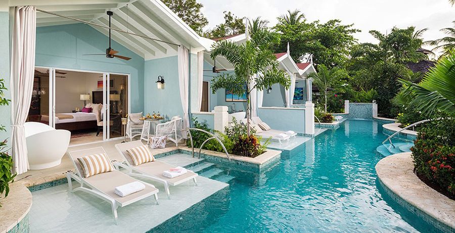 Sandals Regency La Toc: While you won't find swim-up suites at this resort, you can get close by booking accommodations with a private pool. Take the Oceanfront Two-Story One Bedroom Butler Villa w/ Private Pool, for example – it comes with its very own private pool and even a Tranquility Soaking Tub™ for two. Talk about ultimate relaxation!