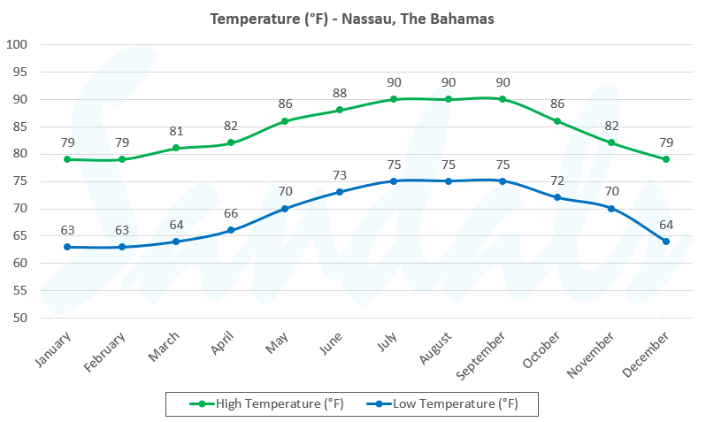 Though The Bahamas does not experience winter, months like January tend to be cooler than most with lows of 63°F at night. Highs in January are typically around 79°F during the day.