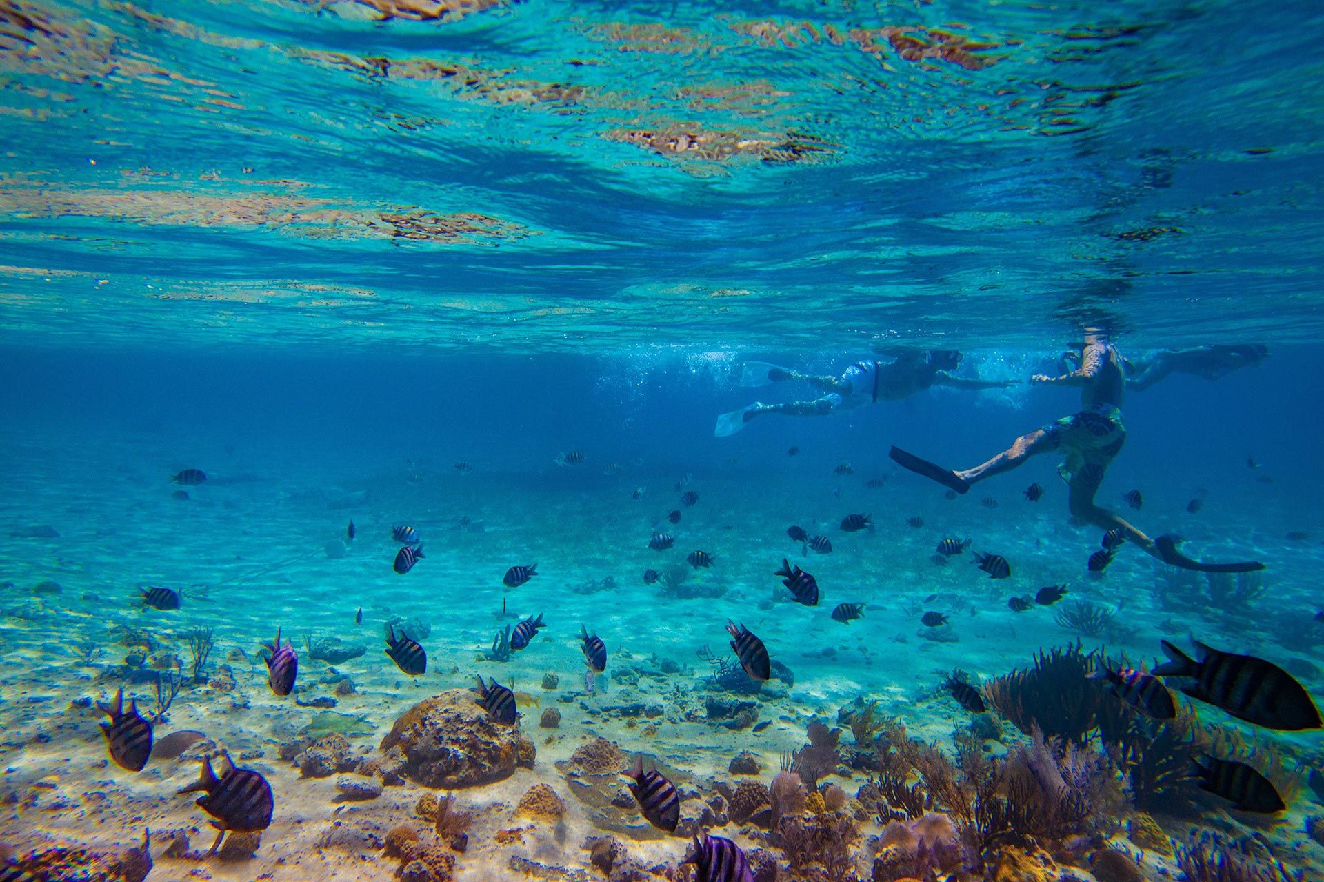 Sea life you might encounter while snorkeling in The Bahamas, include lobsters, crabs, snappers, eels, stingrays, hard corals, soft corals, squid, angel fish, parrot fish, trumpet fish, trigger fish, goat fish, urchins, squirrel fish, tangs, butterfly fish, sharks, barracudas, jacks, anemones, groupers, flounder, octopi, turtles, jellyfish, lionfish and more.