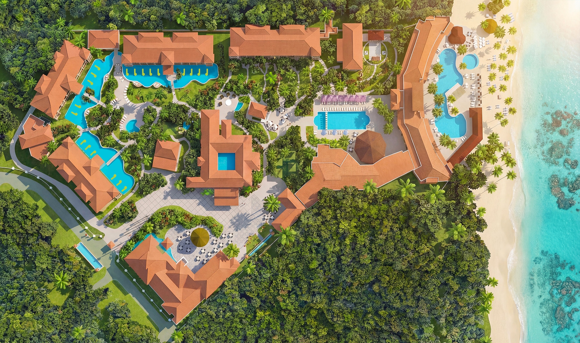 These exotic Butler Suites are set along the longest river pool in Barbados. The spacious master bedroom features a four-poster, king-size bed, HD smart TV and a fully stocked bar. A separate living room boasts a comfy seating area, second HD smart TV, and a private patio featuring a Tranquility Soaking Tub for two and zero-entry access into the Crystal Lagoon river pool. The en-suite spa-style ba...